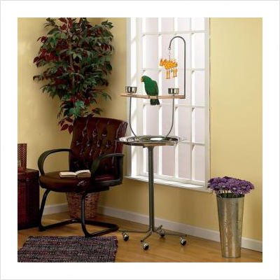 Shop for Bird Cage Gyms from BirdCages.com! The Parrot Playstand is a play area ideal for small to medium-sized parrots. This unit includes a lower tray and a perch to keep your bird comfortable. The perch is made of mangrove wood and has a natural hardwood look.Your parrot will entertain himself with two food cups and a removable toy hook as well as a generous amount of interior space. The simple construction and size of the Playstand will allow you to store it easily when not in use. A wheeled base allows for easy transportation.Whether you need to entertain your bird while cleaning a cage or your bird just needs a change of scenery the Parrot Playstand fits the bill.About Mid-West Metal ProductsIn 1921 Mid-West Metal Products made only one item a Kruse Switch Box Support and over the years began manufacturing millions of wire and sheet metal component parts. By 1960 they were producing training crates for pets. Today Midwest Homes for Pets a division of Mid-West Metal Products produces and markets a variety of pet containment products. These products include dog crates training puppy crates dog kennels cat playpens bird cages vehicle barriers soft-sided carriers grooming tables and much more. They also manufacture a full line of pet accessories like beds and feeding dishes.