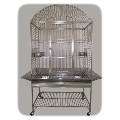 1705003105 Color: Pearl White Shown in Platinum Features: -Outside access food cups. -Bird proof door locks. -Available in Sapphire Blue, Emerald Green, Ruby, Pearl White and Platinum. -1 year warranty. Specifications: -Bar spacing: 7/8'' -Wire gauge: 3/16'' -Dimensions: 40'' H x 34'' W x 24'' D. Suggested breeds include: Greys, Amazons, Eclectus, and Small Cockatoos Available Finishes: