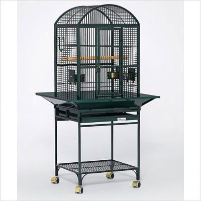 1705001103 Color: Emerald Green Shown in Emerald Green Features: -Finish: Powder coating finish, free from zinc and lead toxicants making it bird-safe. -Easy, No nuts and bolts assembly. -Matching stand is included and features a convenient lower shelf. -Slide out grate for easy cleaning, keeps your bird safe inside. -Available in Sapphire Blue, Emerald Green, Ruby, Pearl White and Platinum. Specifications: -Bar spacing: 1/2''. -Wire gauge: 1/8 -Total cage height: 51''. -Dimensions: 30'' H x 20'' W x 18'' D. Available Finishes: