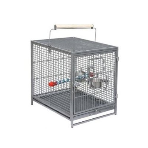 The Poquito Avian Hotel Bird Cage is a smart and functional lodging solution for traveling birds. This state-of-the-art cage is intended to house birds over a weekend, providing them with safe, sturdy, roomy accommodations. This cage is not recommended for use exceeding one week. This cage is ideal for short-term use for travel, outdoor use for healthy sunlight exposure, or for emergency evacuations. Inside you'll find 2 stainless steel food cups, which can also be attached to the outside of the cage, and a cotton rope perch. The rooftop offers a fun out of cage experience using the wooden handle as a perch. This cage also features easy, no-nuts-and-bolts assembly and bird-proof door locks. Ideal for: Short-term travel (not recommended for use exceeding 1 week)BoardingEmergency EvacuationsSleeping cageShort-term outdoor use for healthy sunlight exposureRoad tripsAbout Mid-West Metal Products In 1921, Mid-West Metal Products made only one item, a Kruse Switch Box Support, and over the years began manufacturing millions of wire and sheet metal component parts. By 1960, they were producing training crates for pets. Today, Midwest Homes for Pets, a division of Mid-West Metal Products, produces and markets a variety of pet containment products. These products include dog crates, training puppy crates, dog kennels, cat playpens, bird cages, vehicle barriers, soft-sided carriers, grooming tables and much more. They also manufacture a full line of pet accessories like beds and feeding dishes. Measures 14L x 14W x 18H inches. .5-inch bar spacing with 1/8-inch wire gauge. Ruby or platinum finishes (based on availability). 2 stainless steel food cups. Cotton rope perch inside and wooden handle perch outside.